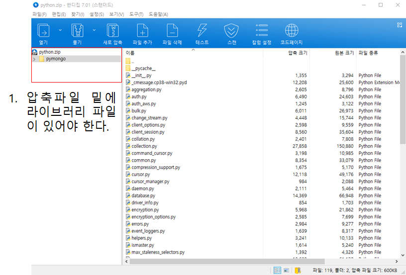 2. pip show pymongo에서 조회 된 경로로 이동한다. 그리고 해당 파일을 찾아서 복사해 다른 경로로 이동시킨다.